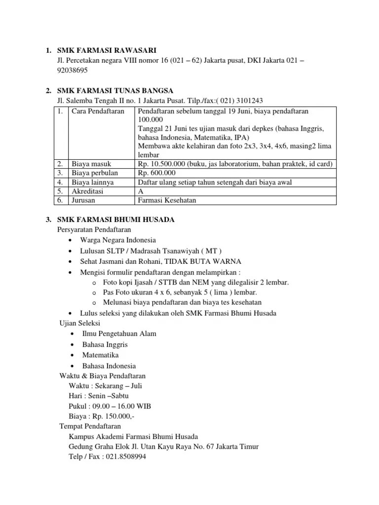 Pulo gebang permai blok h 4 no, 10, provinsi dki jakarta. Smk caraka nusantara jakarta timur. Cakung, kota jakarta timur, daerah khusus ibukota jakarta 13950, . 10, rt.5/rw.13, pulo gebang, kec. Mari bergabung bersama kami, sekolah menengah kejuruan farmasi dan kimia analisis dengan laboratorium terlengkap .